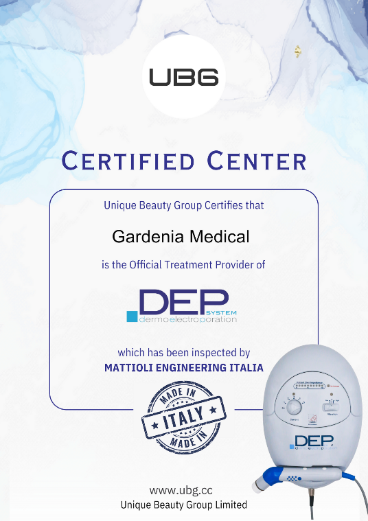 DEP (Dermoelectroporation®) 無針肌底滲透療程是一種由意大利科研團隊研發的國際性專利技術,並獲得美國FDA 認證、CE認證、ISO9001及ISO13485醫療器材品質管理系統標準、並符合GMP標準的醫學美容技術。它是一種完美取替傳統醫療注射的技術,能夠安全有效地提升皮膚的吸收能力,同時促進皮膚底層的膠原再生,提升肌膚緊緻度,使肌膚更加年輕健康。