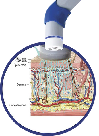 角質層為人體第一道防線,有阻止來外物質入侵的責任,但就變相防礙了有效護膚營養的滲透。一般塗抹的產品吸收率只有大約10%,使用超聲波導入可提高至30-50%,針劑注射更高達90%。